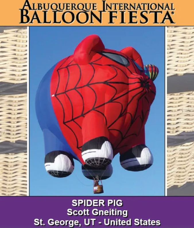 “Spider Pig”. Many of the balloons and pilots had “balloon cards” they handed out to visitors or people helping in the launch field.